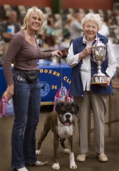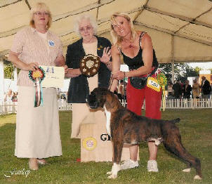 ![]() Misty winning Best in Show from 350 at the Northern Boxer Club under Ferelith Somerfield and American judge, Peter Baynes