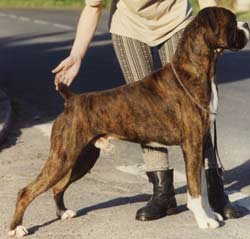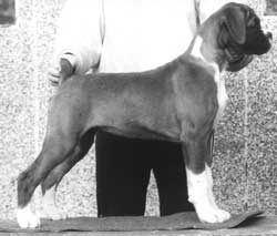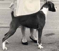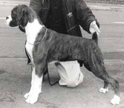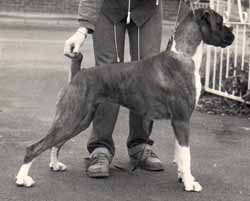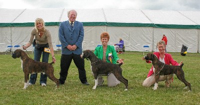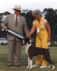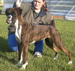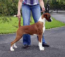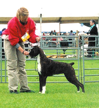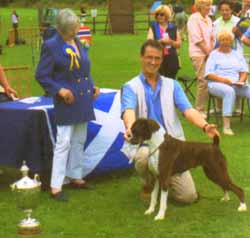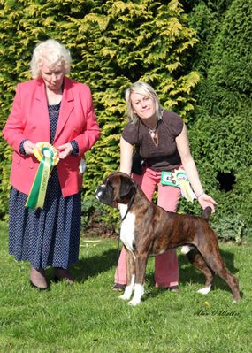 ![]() Ch. Roamaro Scotch Mist of Winuwuk wins a CC under Ken Broughton at the Irish Boxer Club. |