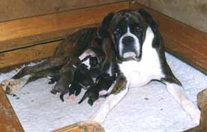 ![]() Misty looks after her young family by Fineas Fogg, almost all of these went on to become Champions or sires of Champions!!