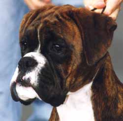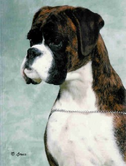 ![]() A classic head study of one of the earliest Winuwuk Champions, Ch Kinbra Uncle Sam of Winuwuk, Top Boxer Male in 1977 |