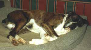 ![]() The Winuwuk expression comes from absolutely lovely eyes whose "mood mirroring character, combined with the wrinkling on the forehead, gives the Boxer head its unique quality of expressiveness" (quote from the Boxer Breed Standard) |