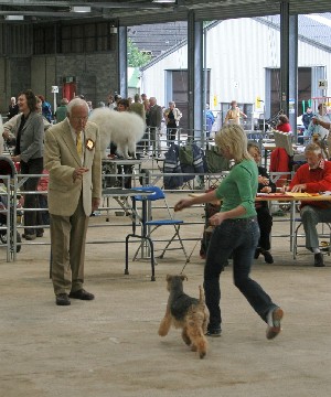 ![]() Ch. Winuwuk Inspiration of Newlaithe winning her 5th CC for her delighted owner, Christine Beardsell. |