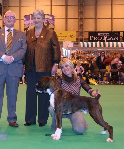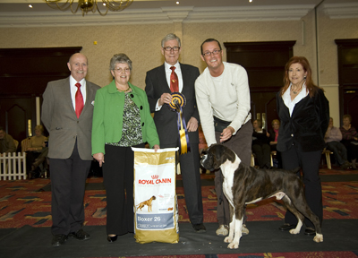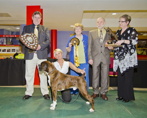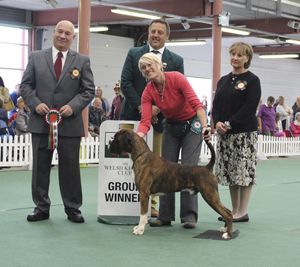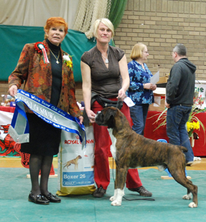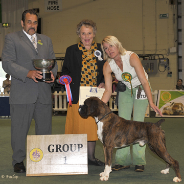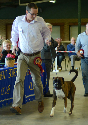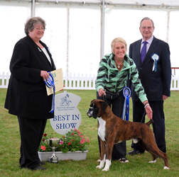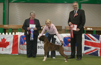 ![]() Best in Show from the Veteran Class at South Wales Boxer Club 2013 under Rosina Brace from Australia |