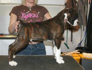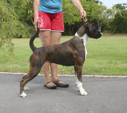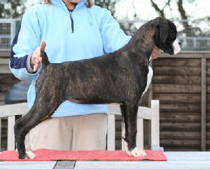 ![]() Winuwuk Take Me Out went Best Puppy in Show at the South Western Boxer Club on her championship show debut |