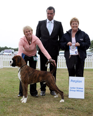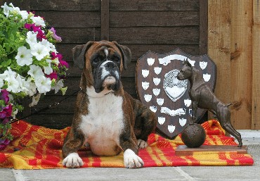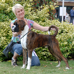 ![]() Ch Rebkai Tale of Love for Winuwuk was a very good winner for us, she won 7 CCs (doing the double with her father twice) and on the day she got made up she won Group 3 at the National under Terry Nethercott. She also went BIS at the Cotswold Boxer Club in 2011 from the biggest breed entry of the year. |
