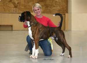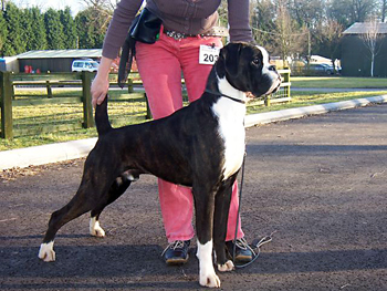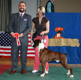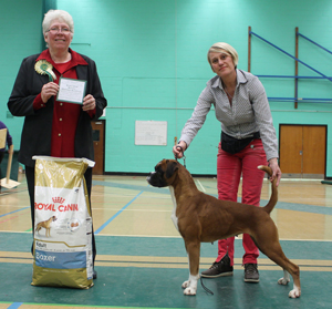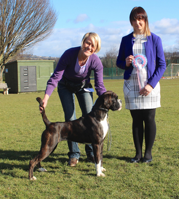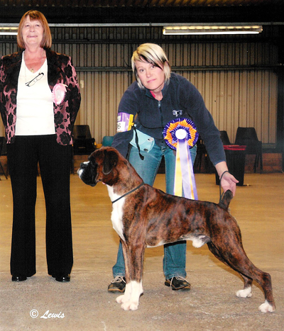 ![]() Winuwuk Il Messaggero winning his first CC at the Trent Boxer Club under Mandy Laidlaw |