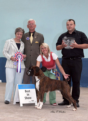 ![]() Max winning his 62nd CC and BIS at the British Boxer Club 2011 |