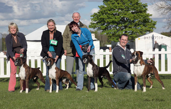![]() Five of our Champions all pictured together. Between them, these wonderful Boxers won 50 CCs and two of them are National Dog of the Year winners |
