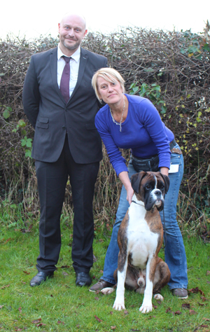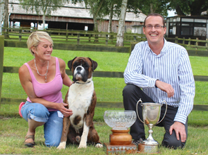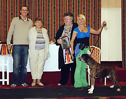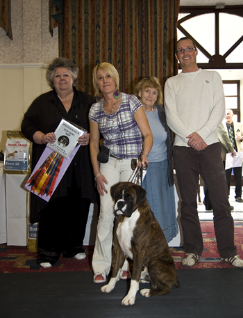 ![]() Collecting Ch/Ir Ch Winuwuk Lust at First Sight's award as Champion of Champions 2010 at the British Boxer Club's Championship show |