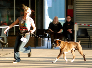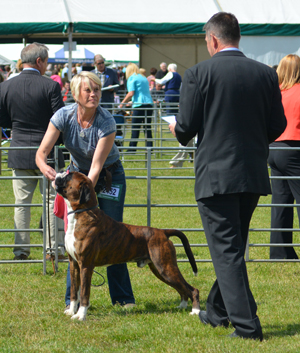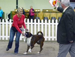 ![]() Winuwuk Maid Marion winning the RCC at the Anglian Boxer Club 2014 under South African judge Marlien Heystek |