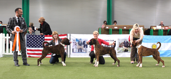 ![]() Being presented with the Champion of Champions, Sire of Merit and Dam of Merit trophies at the British Boxer Club 2013 |