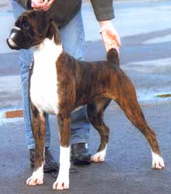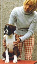 ![]() Winuwuk Take Me Out went Best Puppy in Show at the South Western Boxer Club on her championship show debut |