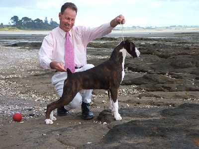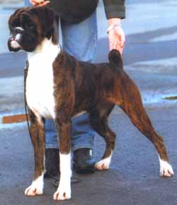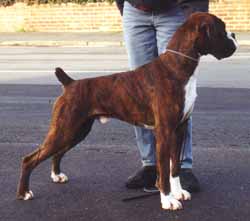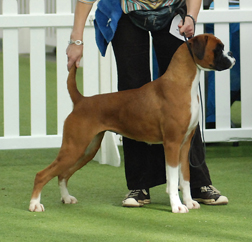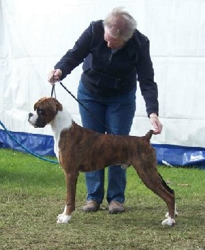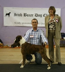 ![]() Ch. Roamaro Scotch Mist of Winuwuk wins a CC under Ken Broughton at the Irish Boxer Club. |
