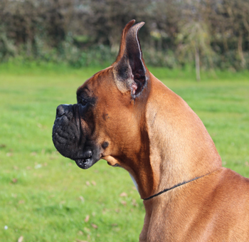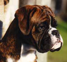 ![]() A classic head study of one of the earliest Winuwuk Champions, Ch Kinbra Uncle Sam of Winuwuk, Top Boxer Male in 1977 |