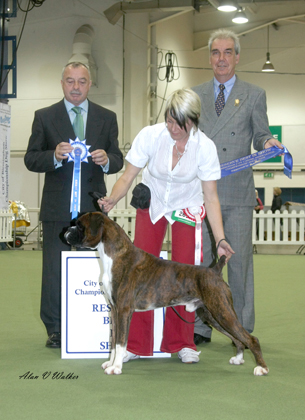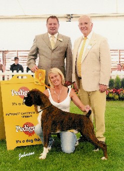 ![]() Misty winning Best in Show from 350 at the Northern Boxer Club under Ferelith Somerfield and American judge, Peter Baynes