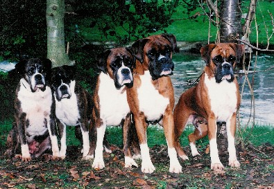 ![]() Five of our Champions all pictured together. Between them, these wonderful Boxers won 50 CCs and two of them are National Dog of the Year winners |