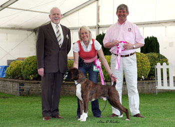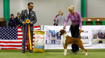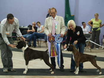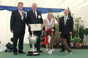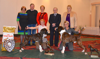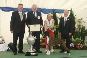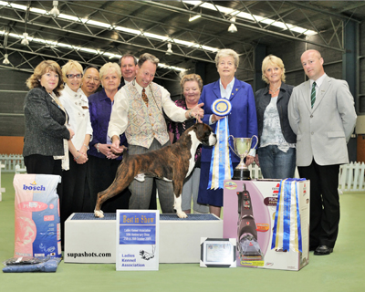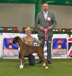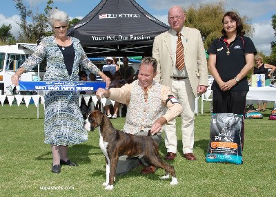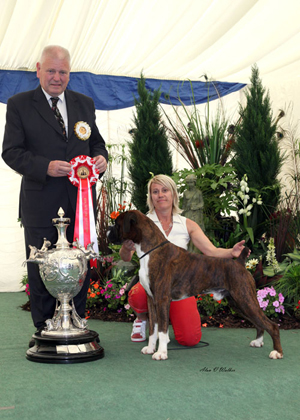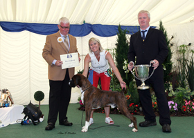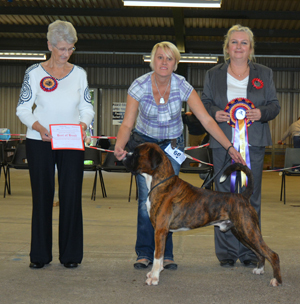 ![]() Best in Show from the Veteran Class at South Wales Boxer Club 2013 under Rosina Brace from Australia |