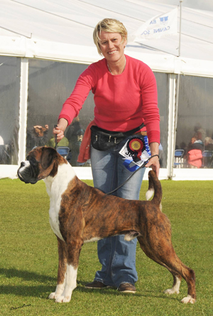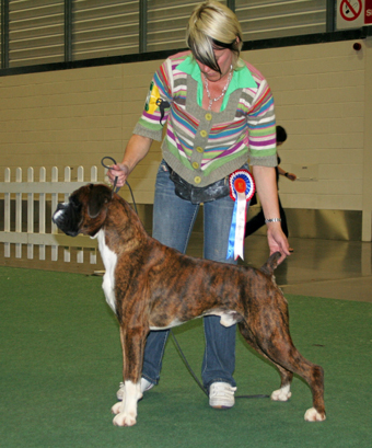 ![]() Winuwuk Il Messaggero winning his first CC at the Trent Boxer Club under Mandy Laidlaw |