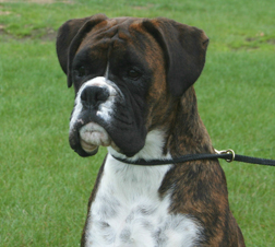 ![]() The Winuwuk expression comes from absolutely lovely eyes whose "mood mirroring character, combined with the wrinkling on the forehead, gives the Boxer head its unique quality of expressiveness" (quote from the Boxer Breed Standard) |