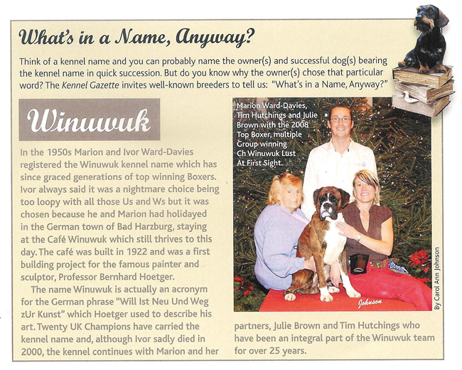 ![]() Ch Winuwuk The Outlaw Best of Breed at Crufts and Top Boxer 2014 |