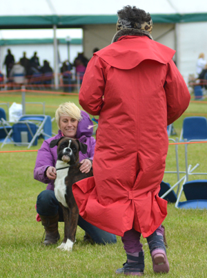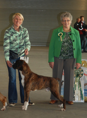 ![]() Winuwuk Maid Marion winning the RCC at the Anglian Boxer Club 2014 under South African judge Marlien Heystek |