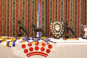 ![]() Ch Winuwuk Lust at First Sight admires some of the Winuwuk trophies. |